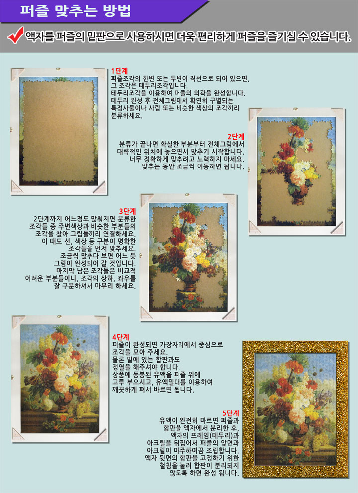 * 본 상품에는 퍼즐을 맞추기 위한 별도의 판이 없습니다.